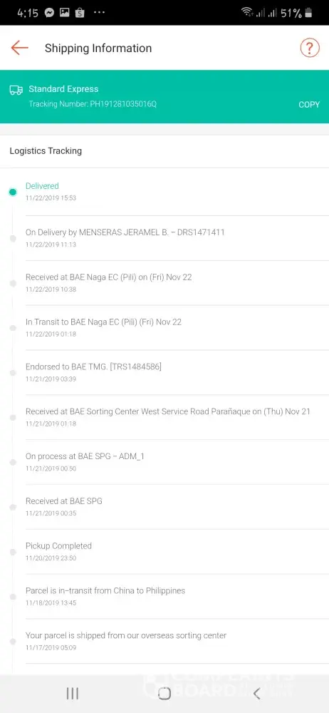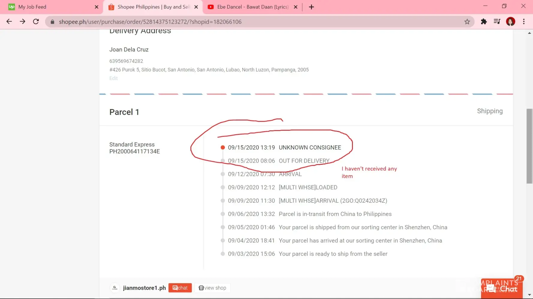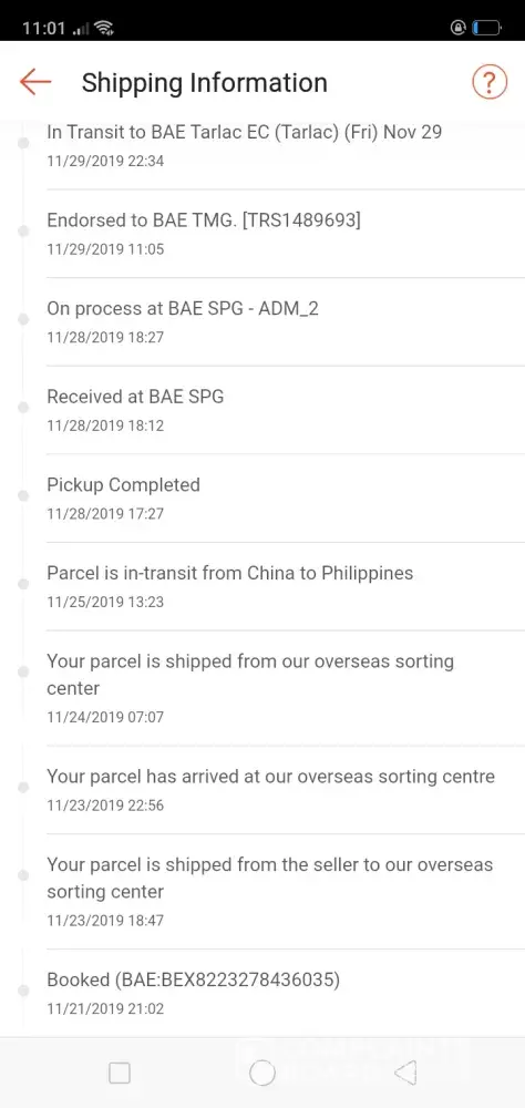 Parcels with tracking numbers PH1971292049136 and PH1913025264620 were both received at BAE NCR East EC (Cainta) last Wednesday, Dec. 11. But until today, deliveries are not yet made.