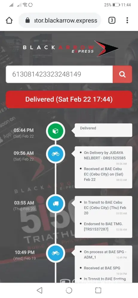 The parcels arrived Cebu City last November 7 and I expected to receive my parcels from shopee within that week. I already paid the products, but I guess black arrow will no longer be performing deliveries in my town unlike before. This wasn't my first or second time. If I'm going to oder with COD they would say that my area is not serviceable for COD. But when I also tried to pay them ahead still Black Arrow didnt Deliver it. My problem is that it takes too long for me to receive the refund of my payment.