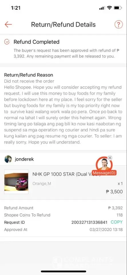 Last time, black arrow was partnered with shopee and I, as a seller, someone ordered a helmet from me and used black arrow as the courier. Then the pandemic came, the said item was already in the buyer's unit until the buyer refused to accept the item because he's going to use the item to buy food and other necessary items. Then just now, the shopee told me that black arrow and shopee had cut ties. So here I am, to file a complaint for my item because we didn't receive the item yet since March. I will send a screenshot of the returned item from Shopee. I hope black arrow immediately check this issue as soon as possible. Thank you.