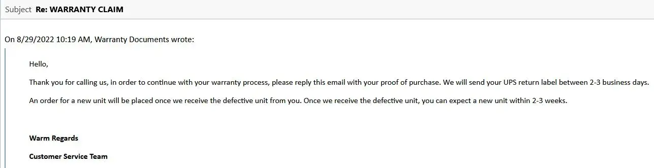 Their customer service team is completely useless. I sent in my portable air conditioner for a warranty failure on June 29th. It is August 3rd and I have not received any communication regarding the replacement. It is now past the original window of expectation to have this resolved. I have spoken to multiple agents over the phone and over chat who have all not had any information for me, and simply told me they would escalate the issue and contact me when they hear something.