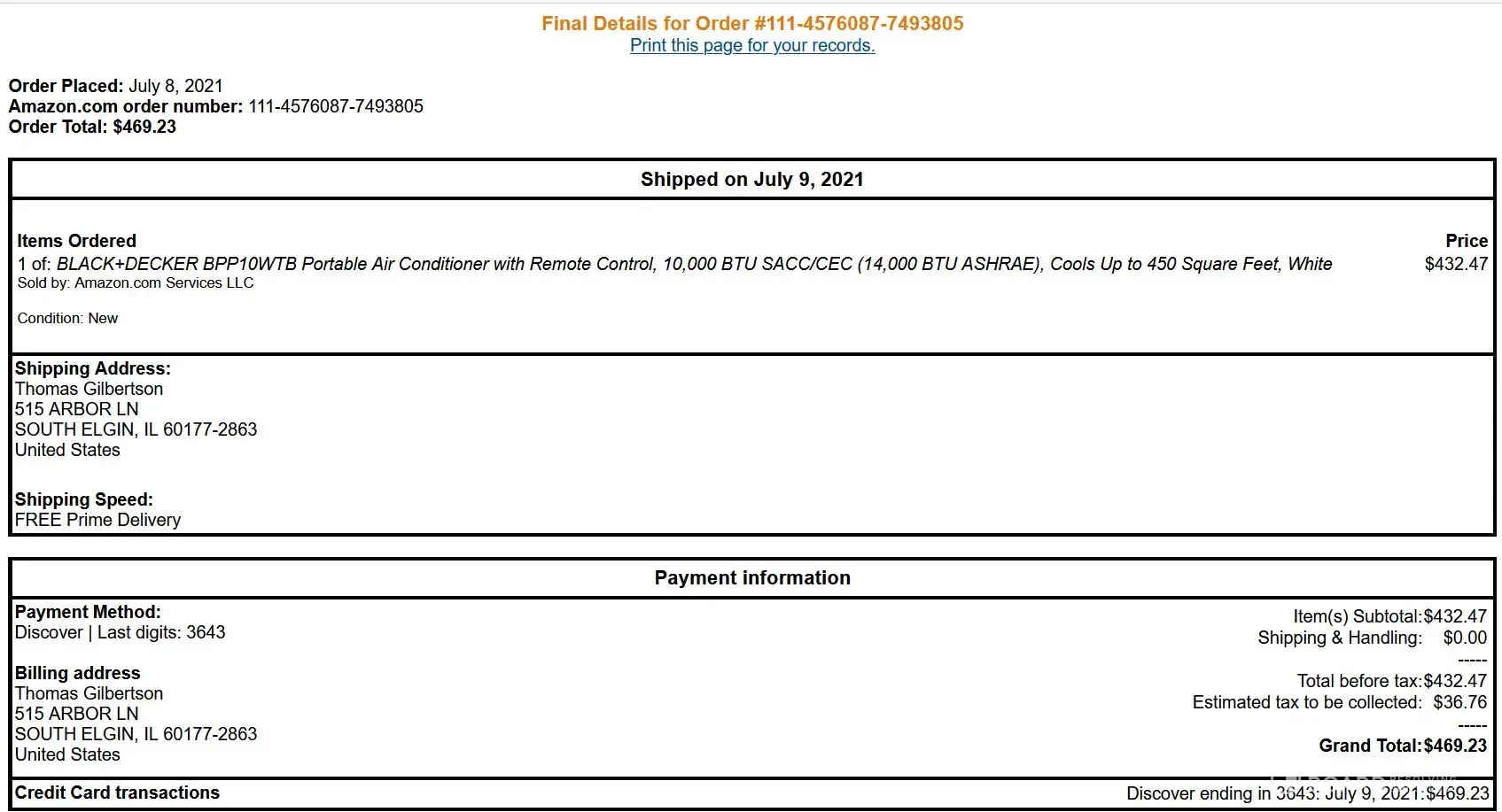Purchased a Black+Decker portable air conditioner from Amazon on 3/31/2023 for $483.82. The unit stopped working late July so called [protected] which is on the Amazon site but was told that I needed to contact Black+Decker since it was under manufacturer warranty. Number given was [protected]. On August 1, 2023, received an email from...
