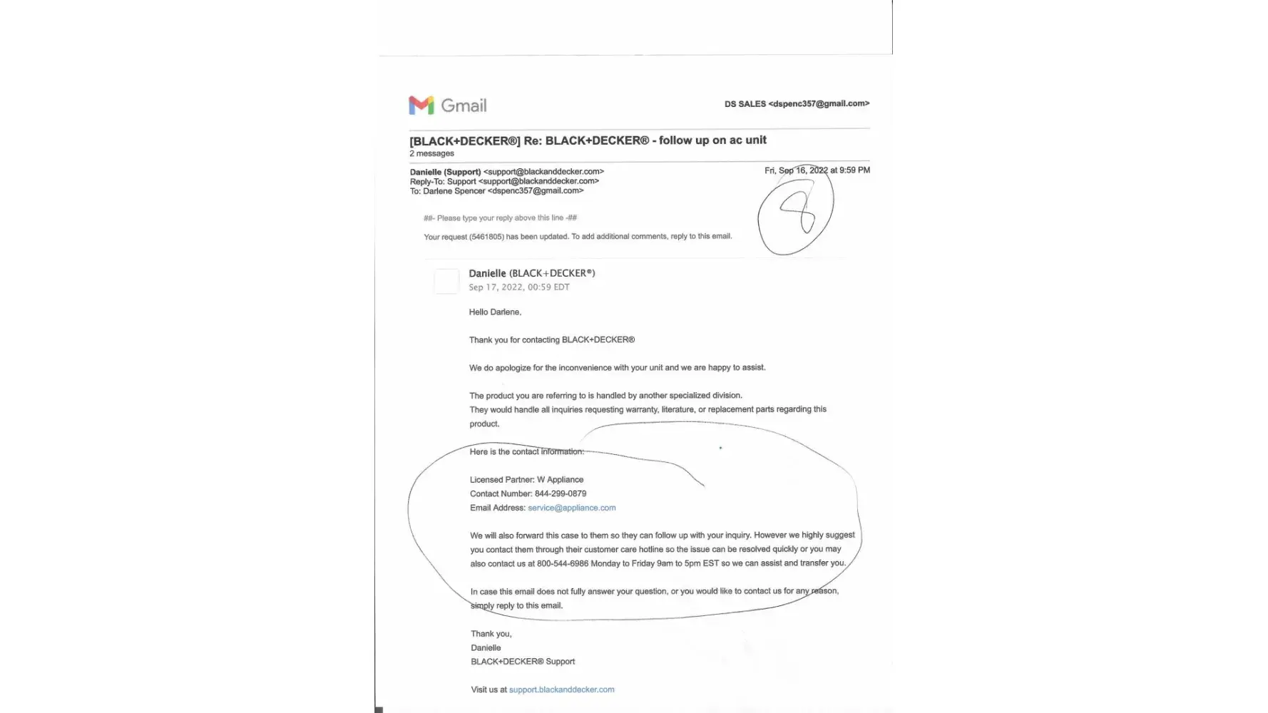 -Returned Portable AC in June of 2022 to Black and Decker, after receiving a shipping label from Black and Decker.