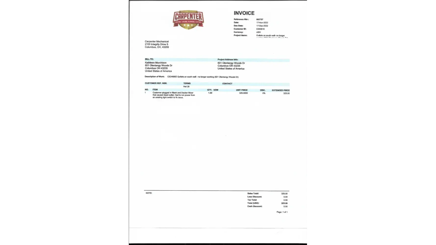 Desired outcome: Want to be reimbursed $350.00 for the cost of my electrician.