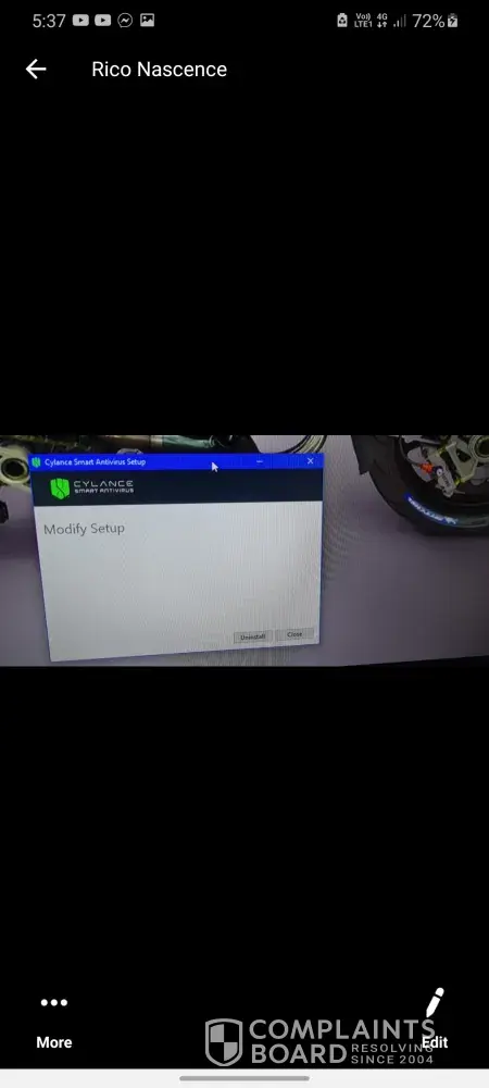 I have uninstalled and deleted Cylance Smart Antivirus Software from my laptop.