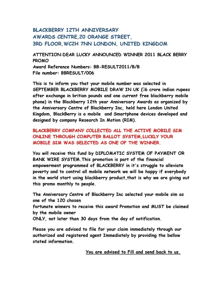 blackberry mobile lucky draw
