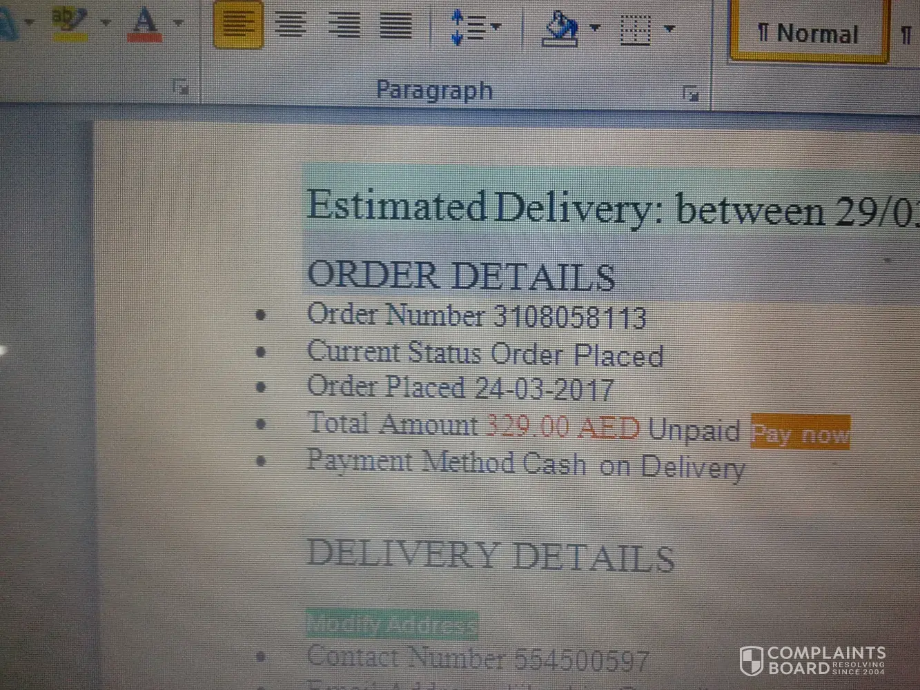 As a result sometime back a complaint was filed with the BBB bureau because