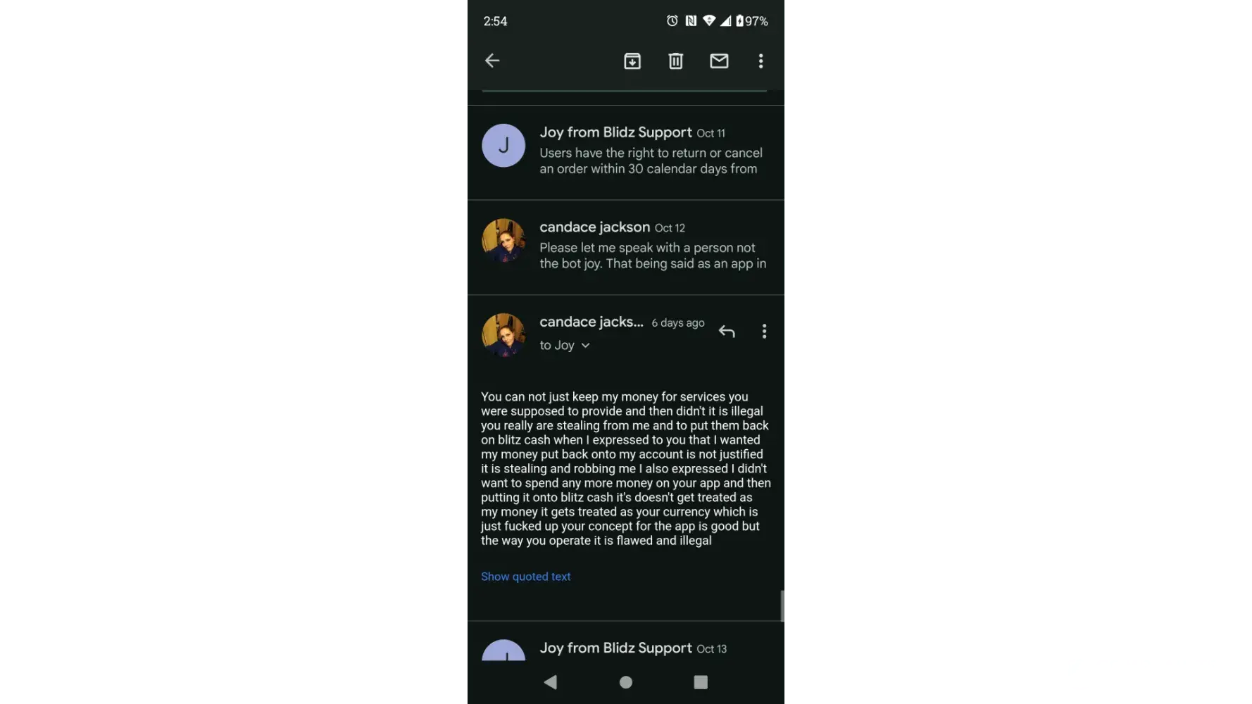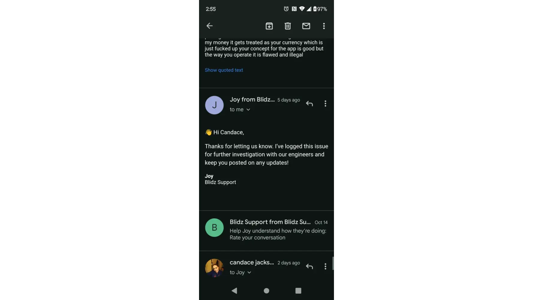 And I tried 100 times to contact and no answer. And I send many emails to Blidz explain my situation