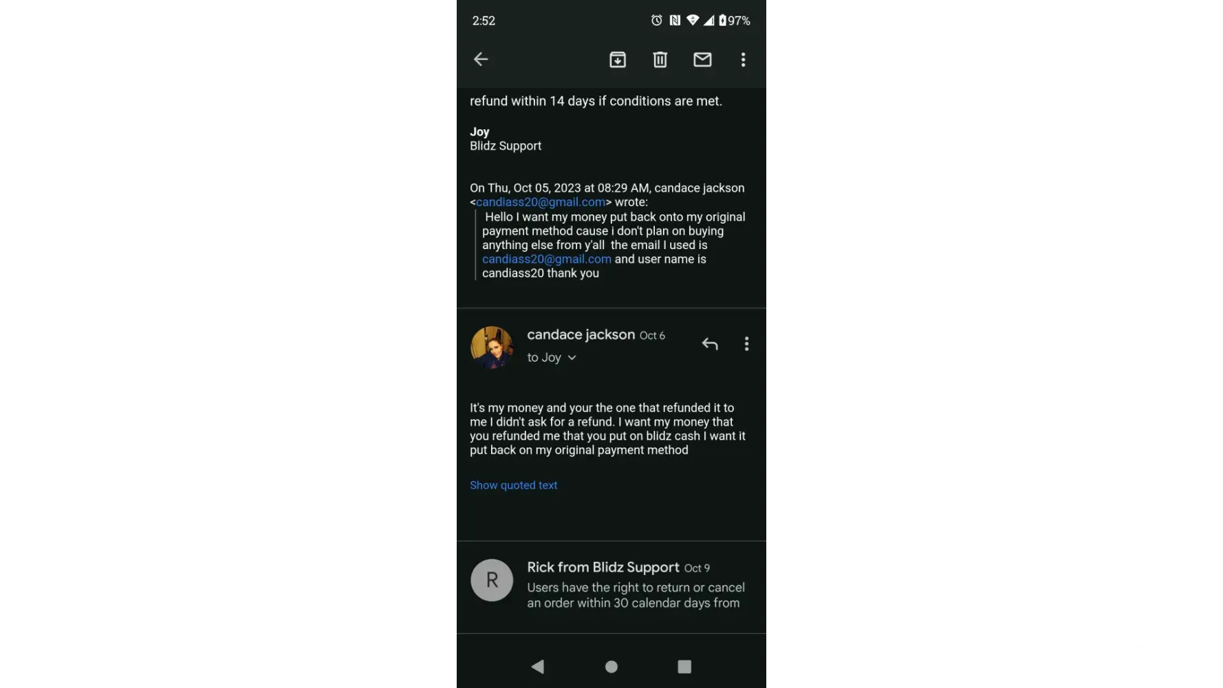 Desired outcome: Refund and cancel of anything and everything having to do with Blidz.