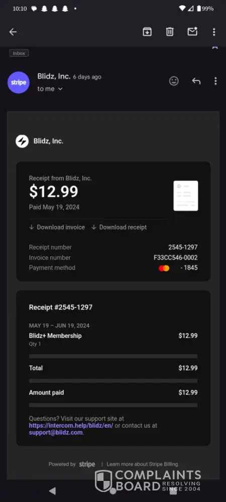 Blidz, Inc. after opting out I was charged $12.99 and they won't respond or refund