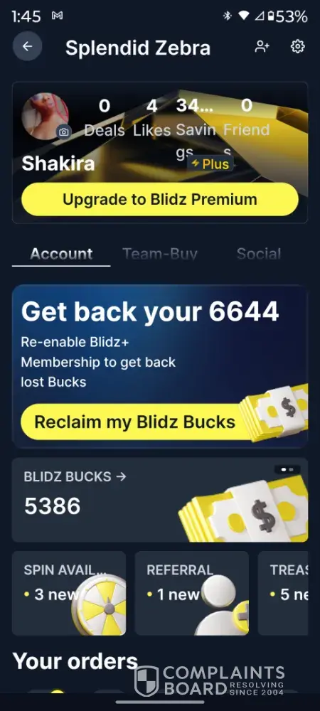 When I first went on blidz, I was Happy. It seemed kind of fun and you could play games win prizes and shop all at the same time. and also get money back through PayPal . then as I put in my order. They were canceled on the team orders and also the buy alone orders each one got canceled. This is the fourth review. I've written and they promise $25 for your review. I have not seen that yet, so I'm gonna give it a couple more days to see how it goes. I will be changing all my other reviews on the other three site and then I'm going Remove my information close my account.Make sure my cards are not on there.And I'm going to Union install the app.I hope they pull through.