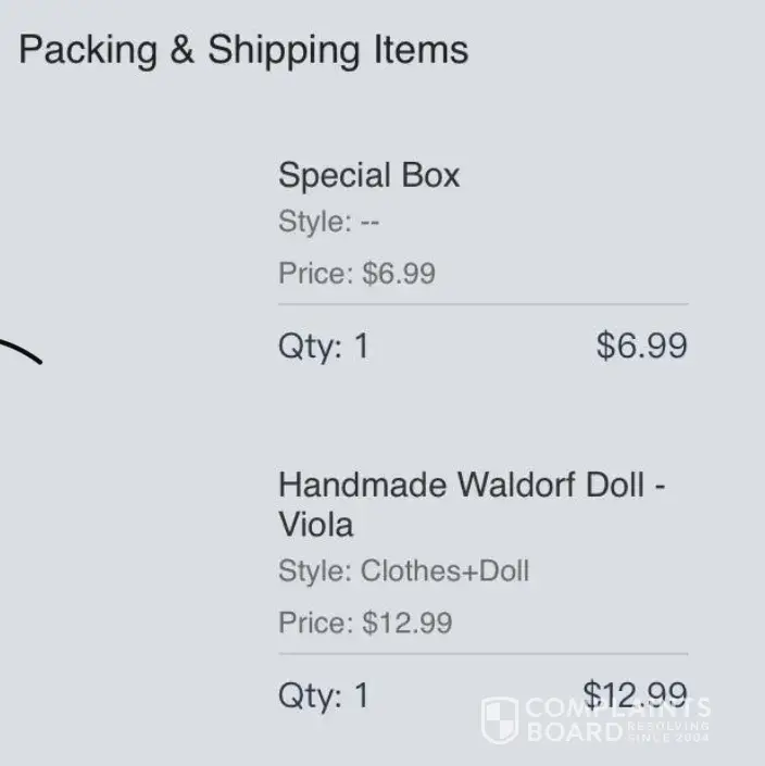 On Dec 5, 2022 I ordered a Waldorf doll at the price of $12.99. Shipping was an additional $8.99. The company is Bliogo e-mail address of emaill. shoplzaaz.com