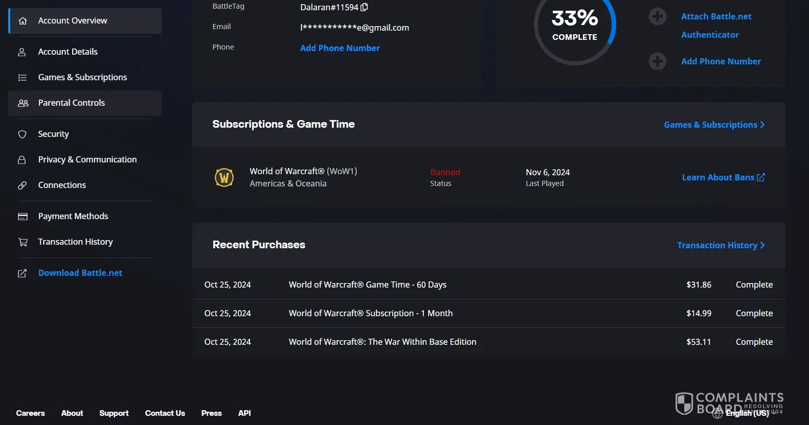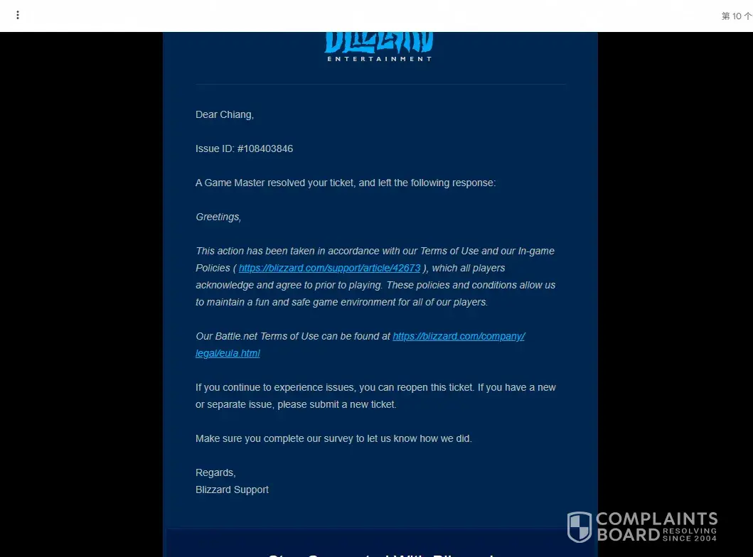 Read full complaint and 1 comment116 Blizzard Entertainment Complaints