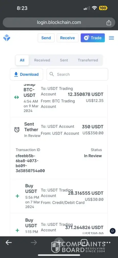 Read full complaint and 3 commentsTransferred the funds to Blockchain for a month. Not see it on my account