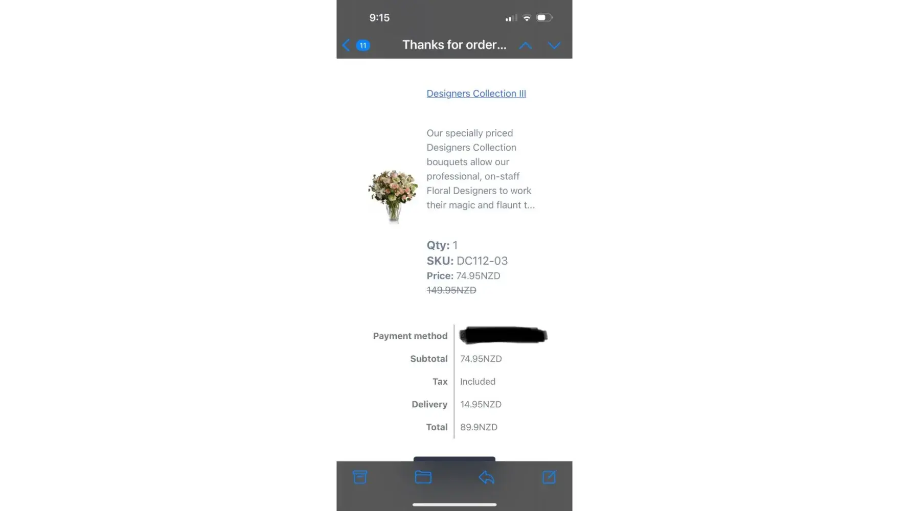 Later that day I received a communication from Bloomex saying my order was "incomplete", and so I completed the online form again and submitted it. This was for $64.38, and the invoice was INV-4169234.