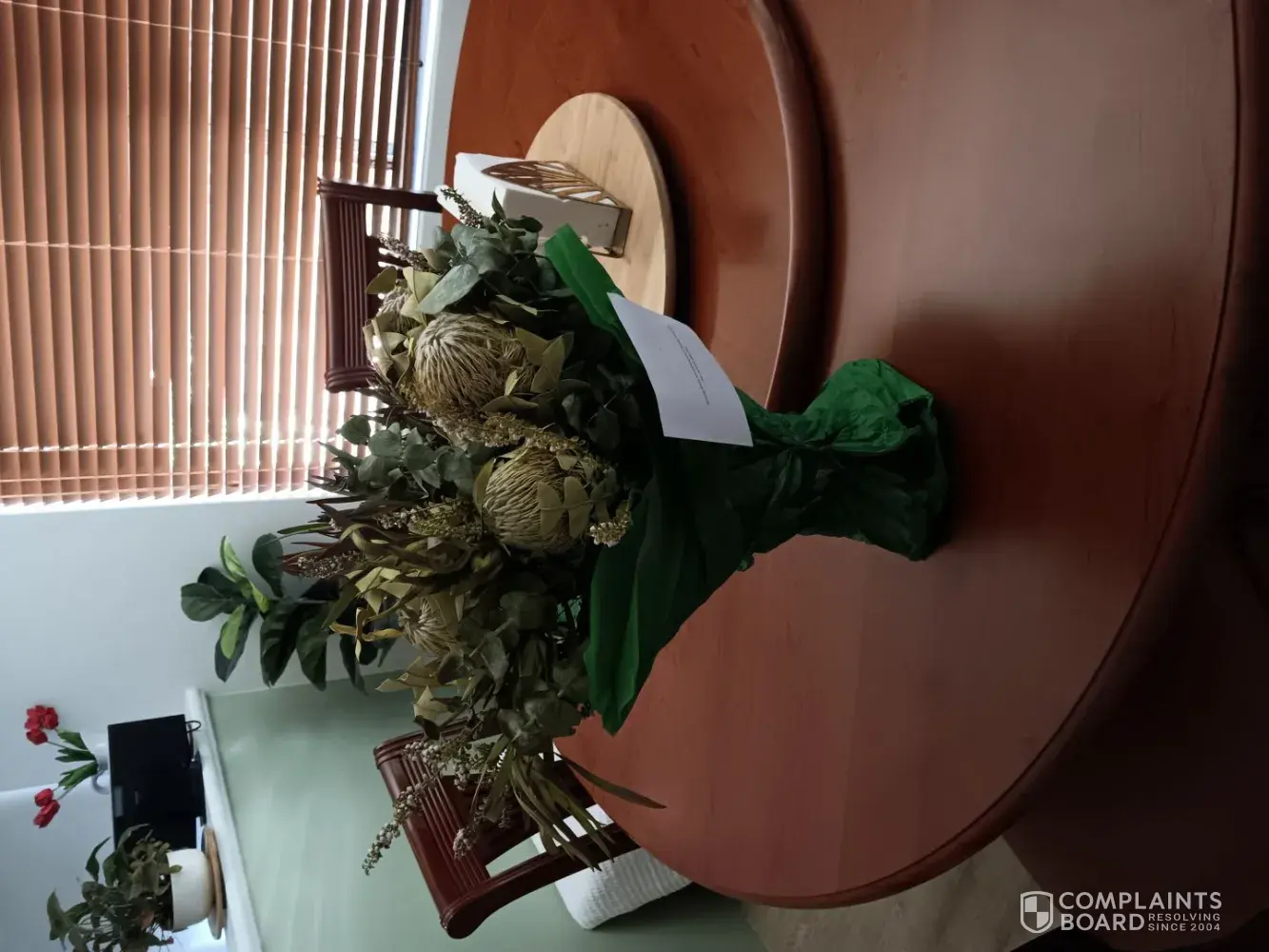 Desired outcome: A full refund for me and fresh flowers for mum.
