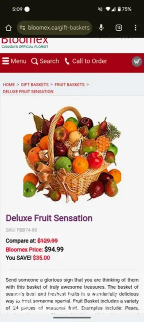 I ordered the Deluxe Fruit Sensation Basket regular price 129.99 on sale for 94.99. The description says "fruit basket includes a variety of 24 pieces of seasonal fruits, examples pears, apples, oranges, plums, peaches, kiwi, mango & pineapple" I received a basket that included 5 apples, 8 oranges, 4 bananas, 4 avocados & 2 lemons. The total value of the...
