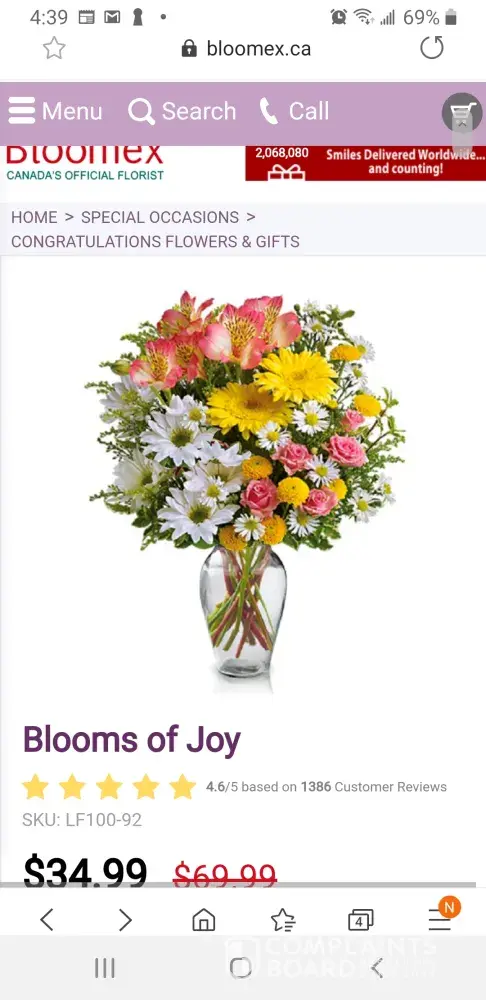 A later voice mail message today from Bloomex aid I needed to contact the hospital re: the issue.