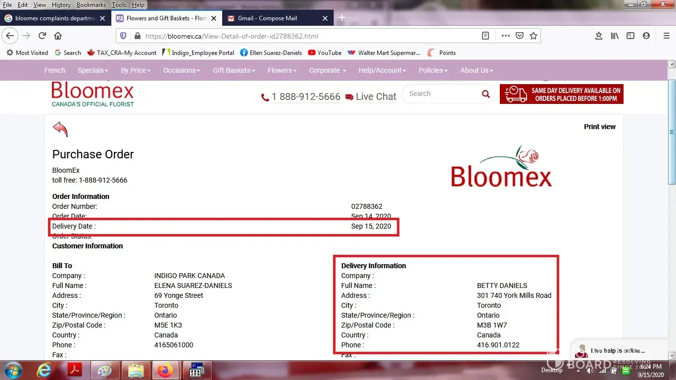 I placed an order on the 27/7/2020 for delivery on the wed 29/7/2020. As of today 31/7/2020 i have been unable to make contact with Bloomex. I have left voice messages and live message on their site. NO ONE has contacted me, and the Phone number say's that All the operators are bust at the moment and someone will get back to me.