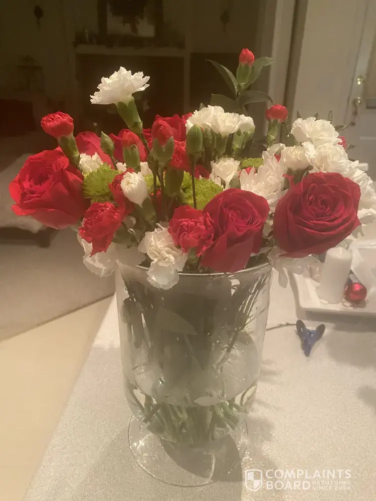 I placed the order online on Dec 6 for delivery on Dec 8 as a special birthday gift. I ordered the Bestseller Bouquet ($59.99) and then supersized the order for an additional $20.00 charge. The description was red roses, white lilies and white daisies. Photos below. At 3:30pm on delivery day I receive an email to say my order is in transit. I spent the next 3 hours either calling them (voice message only - never received a response after leaving messages) or on Live Chat - same thing. An automated response saying they would look into it and respond shortly. Which they never did. I finally asked them to cancel my order at 6pm as it was for a special occasion and it hadn't arrived and it was of no use after the fact. As of this moment, I have never received a reply or any explanation or apology. The order was eventually delivered late at night, the recipient didn't get them till the next morning. Which I was annoying but can be overlooked. But to make matters even worse, the bouquet that arrived was NOTHING like the photo or description. No lilies, no daisies and a couple of roses, just a selection of carnations. It looked cheap and it was an embarrassment. I paid $100 for a bouquet of carnations that never arrived on the day it was supposed to even though the order was placed in plenty of time. They have not offered any explanation why it was so late and why its nothing like I ordered. Their Customer Service doesn't exist, they do not respond and I don't want other people to fall for this scam.