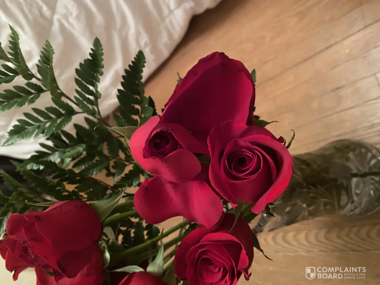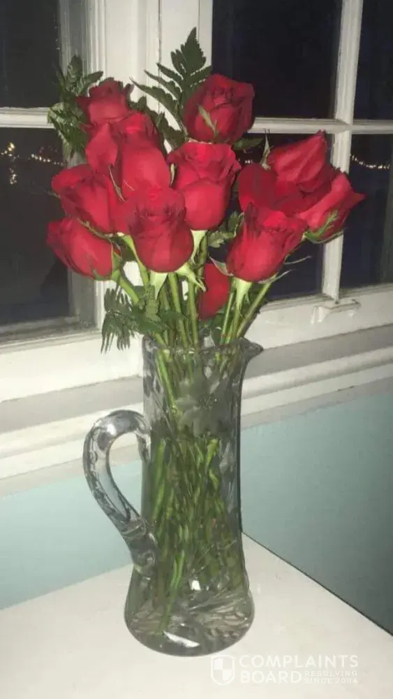 Roses arrived for my birthday today in terrible condition. They arrived after 3pm and were left on step. The driver did not have the decency to ring the doorbell. Rose petals are black, wilting and falling off the stems. Best part of the whole experience was opening up the box. Sadly I feel terrible that my sister paid so much money for such substandard, crappy flowers. This is the second time our family has used this service. Will never use again and never recommend. I posted a thank you on facebook but so embarrassed cause the roses are in such terrible condition. Will never use again!