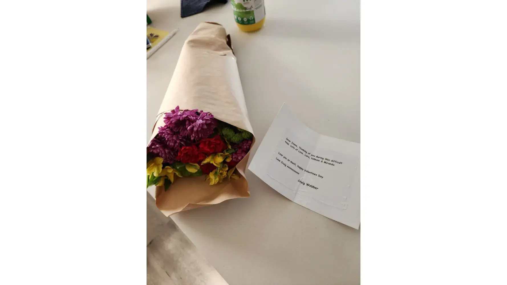 Was sent a tiny bouquet or white roses and calla Lilly’s