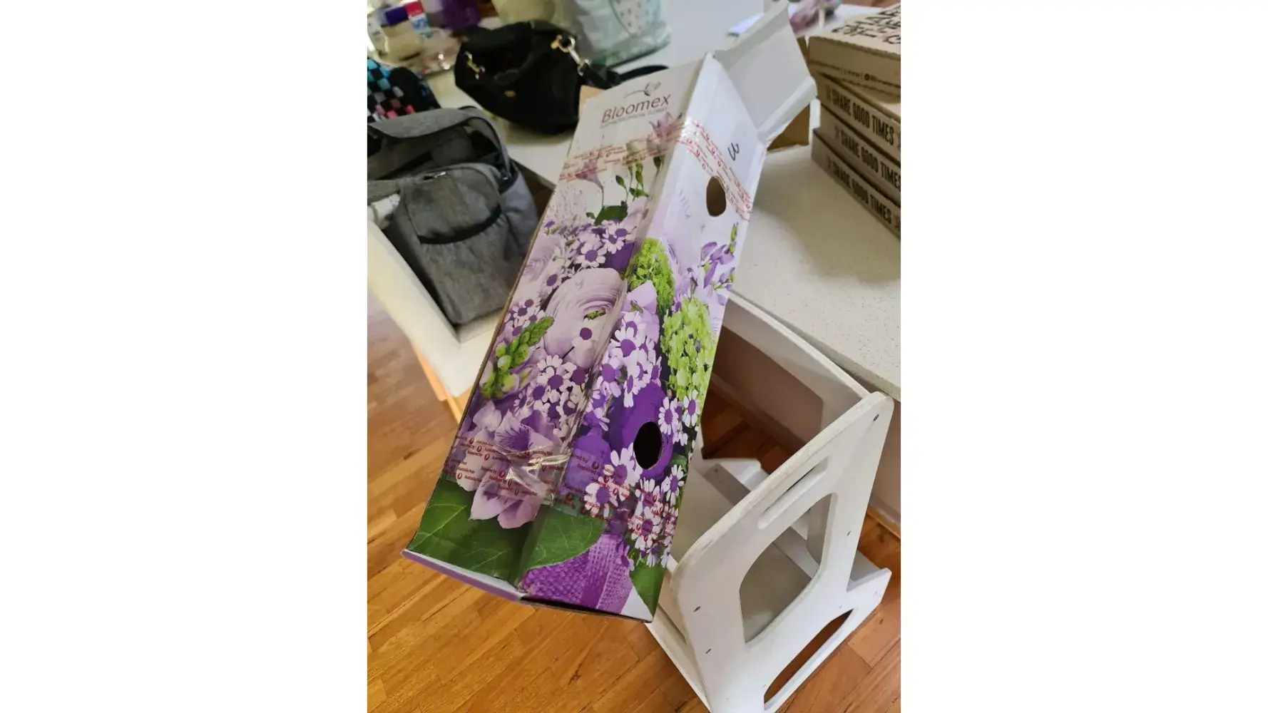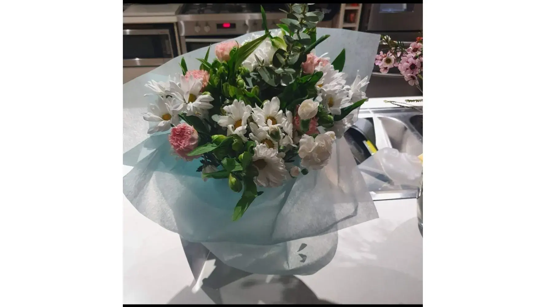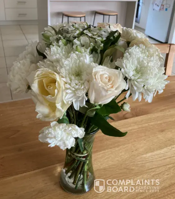 The flowers were delivered the day after on Friday 4/11/22, however not to their home as expected (they were both there) but to the local post office in a box that was crushed, apparently run over by a truck, and the flowers taken out and put back into the box with tape saying repaired by Australia Post.