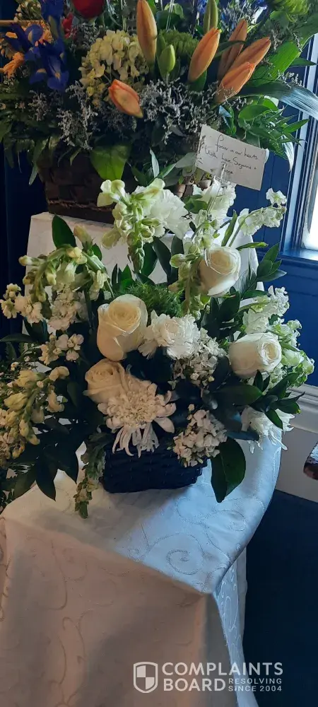 over two weeks and the grieving family has not yet received the floral arrangement.