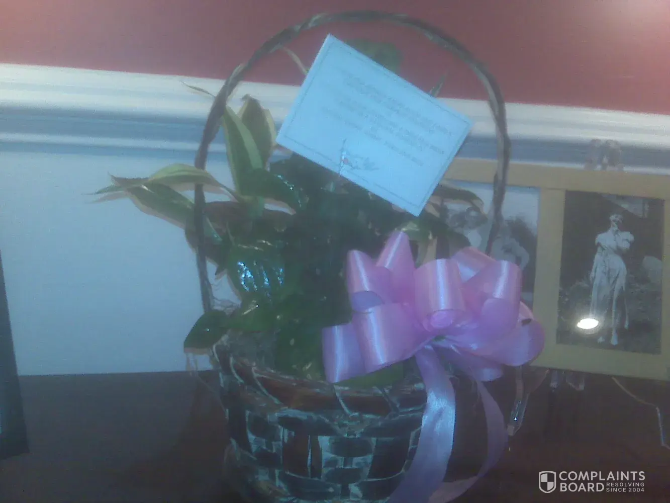 Instead they sent a plant in a dish. Not to mention it was extremely sparse. How embarrassing! I would rather have sent nothing to my son's grandmother rather than this office desk ornament. They offered me a 25% discount. What! I told them it's not the money, I want the name of the florist they used. They would not give it to me. Please do not make the same mistake go through your local florist yourself at least then you have some recourse. Terrible!