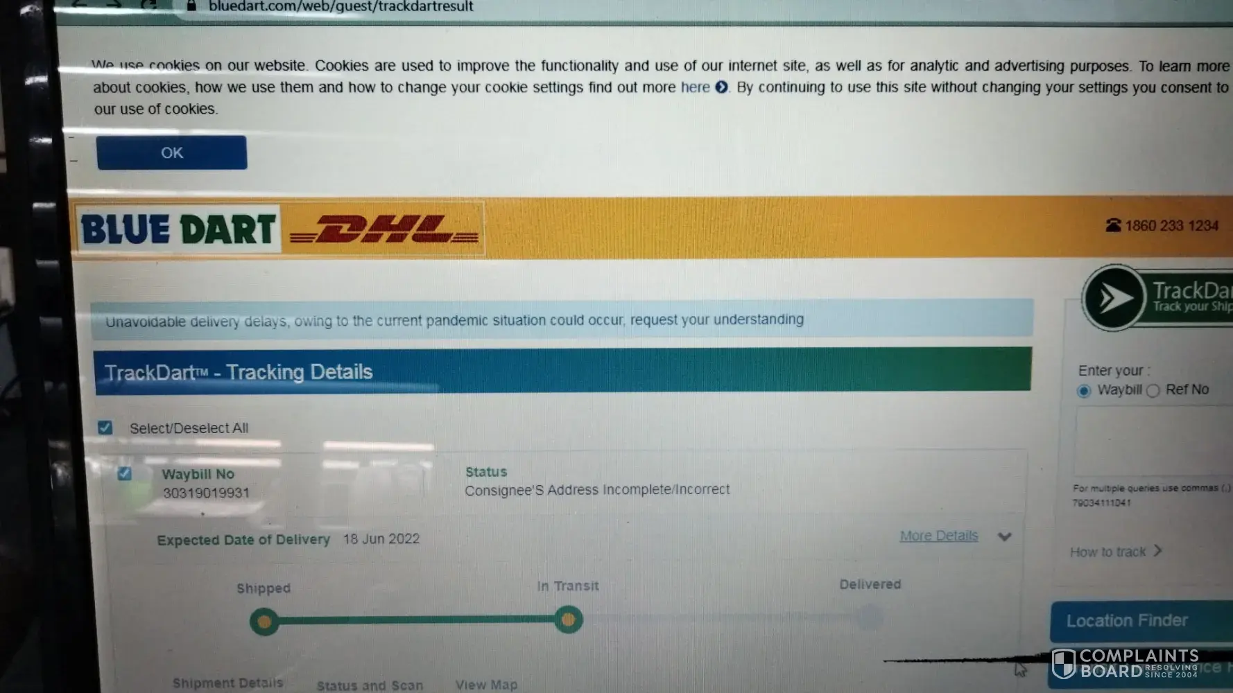 Blue Dart Express complaints: history and resolution overview