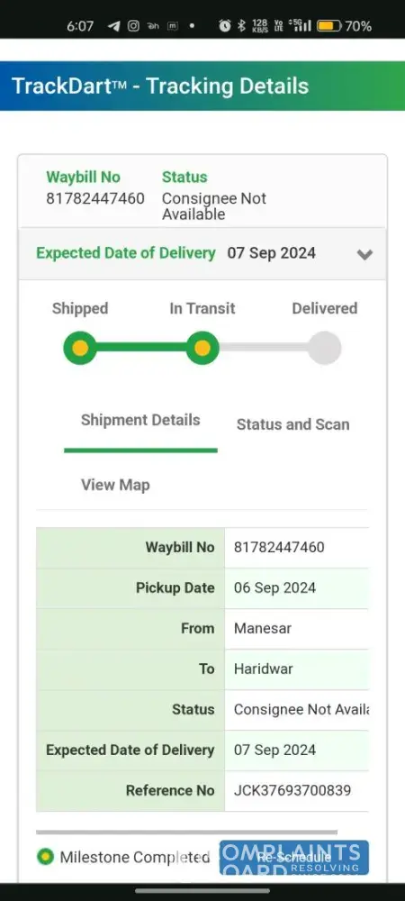 Unprofessional, rude and failed delivery of parcel "awb 356xxxxx91" by bluedart