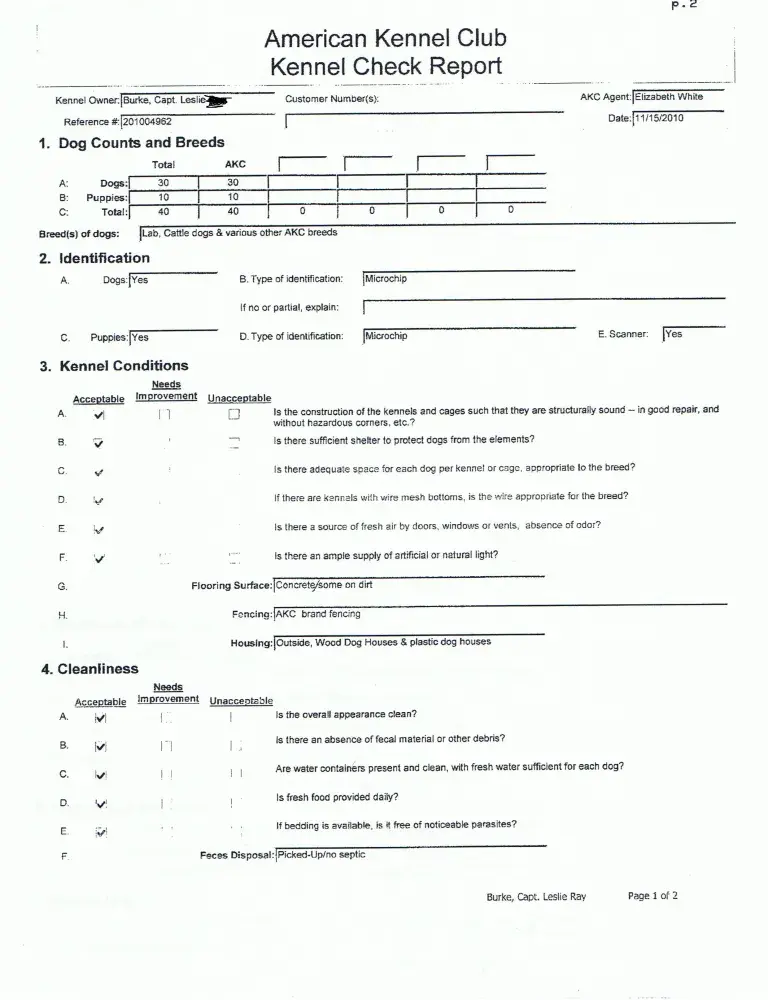 Please notice that the AKC Inspected our dogs and property on the 15th of November and Kathy posted the origional complaint on November 16th.