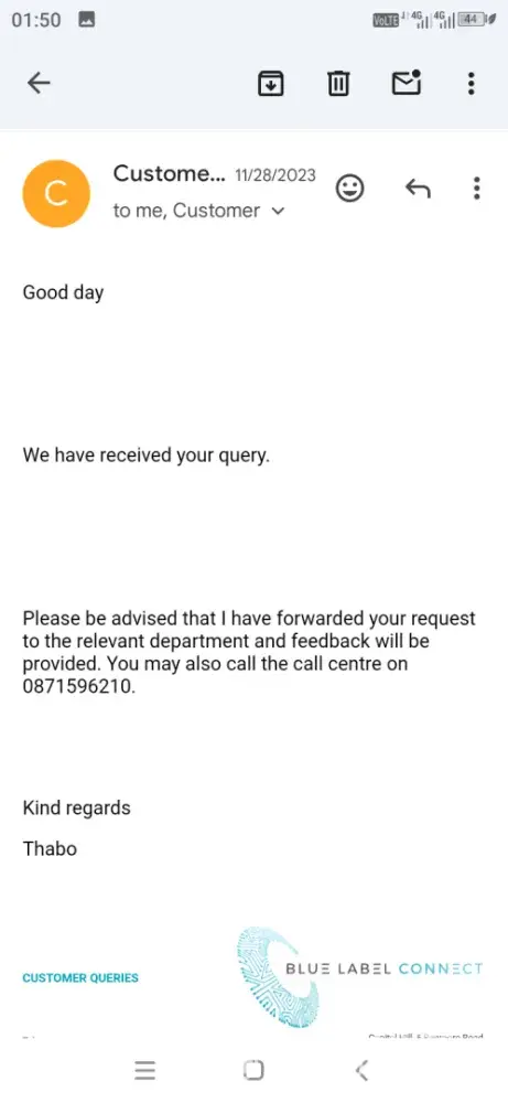 Read full complaint and 1 commentIs Blue Label Telecoms Legit?