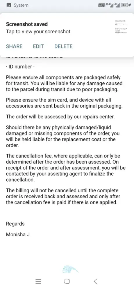 Desired outcome: Please refund my money, cancel the contract and take your cellphone.