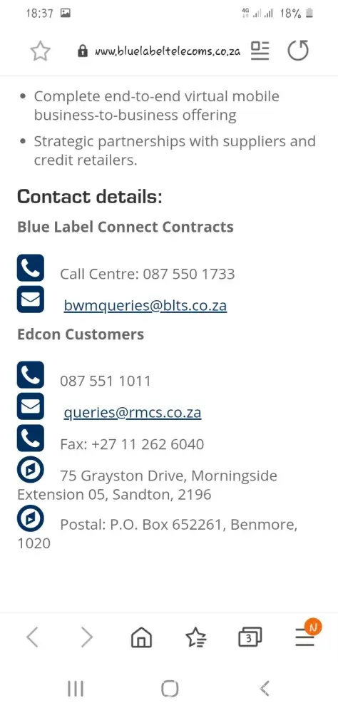 2. Blue Label Telecoms phone numbers