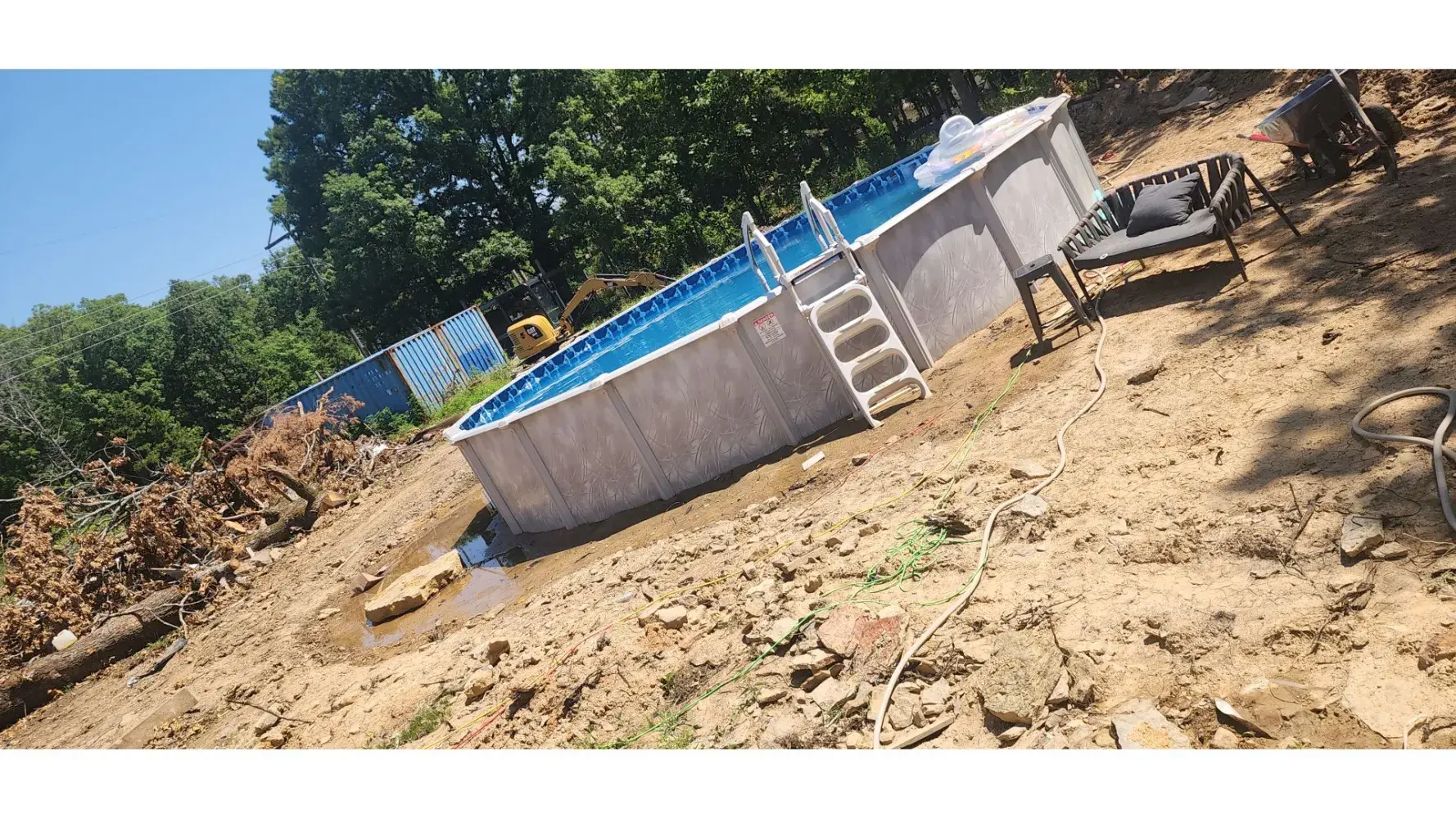 After several weeks past the original agreed upon date of installation another contractor came in to install the pool During installation the contractor dug up a power line. Rather then informing us that he had found a line he cut it causing it to arch as it was a live line running to the shed from the well house. In doing so the fuses were blown causing us to have No running water and after having an electrician come out we also found that the junction box in the shed and well house was damaged as well! The cost to have a new line run an new box’s where over 5000$