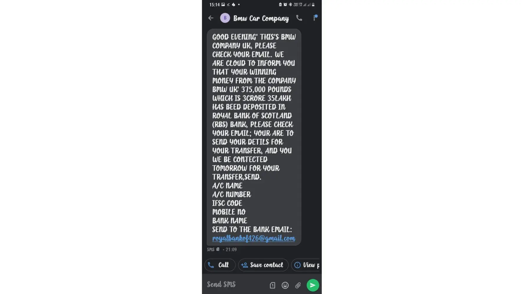 I received a message too saying that I've won a prize from BMW automobile company. Is it fake?