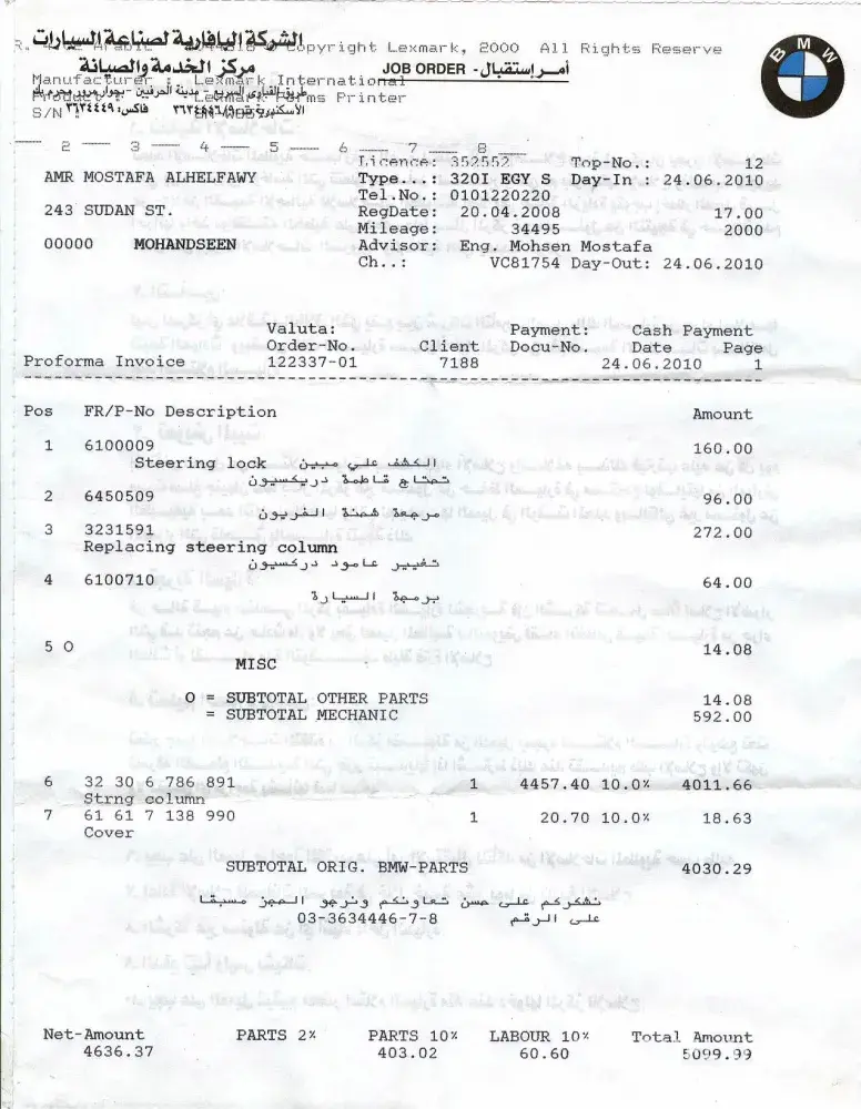 Let me start by asking Is it normal that the steering wheel lock is defected after 35, 000 km? I experienced this defect after exceeding the 2 year guarantee period with 2 months and I was asked to pay for replacing the entire steering Colum, which costs approximately EGP 5, 000, which took place at the Bavarian company lactation in Alexandria.