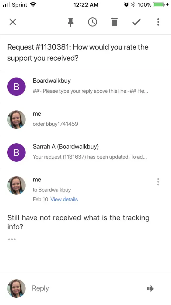 I get one email that says "sorry for delay"