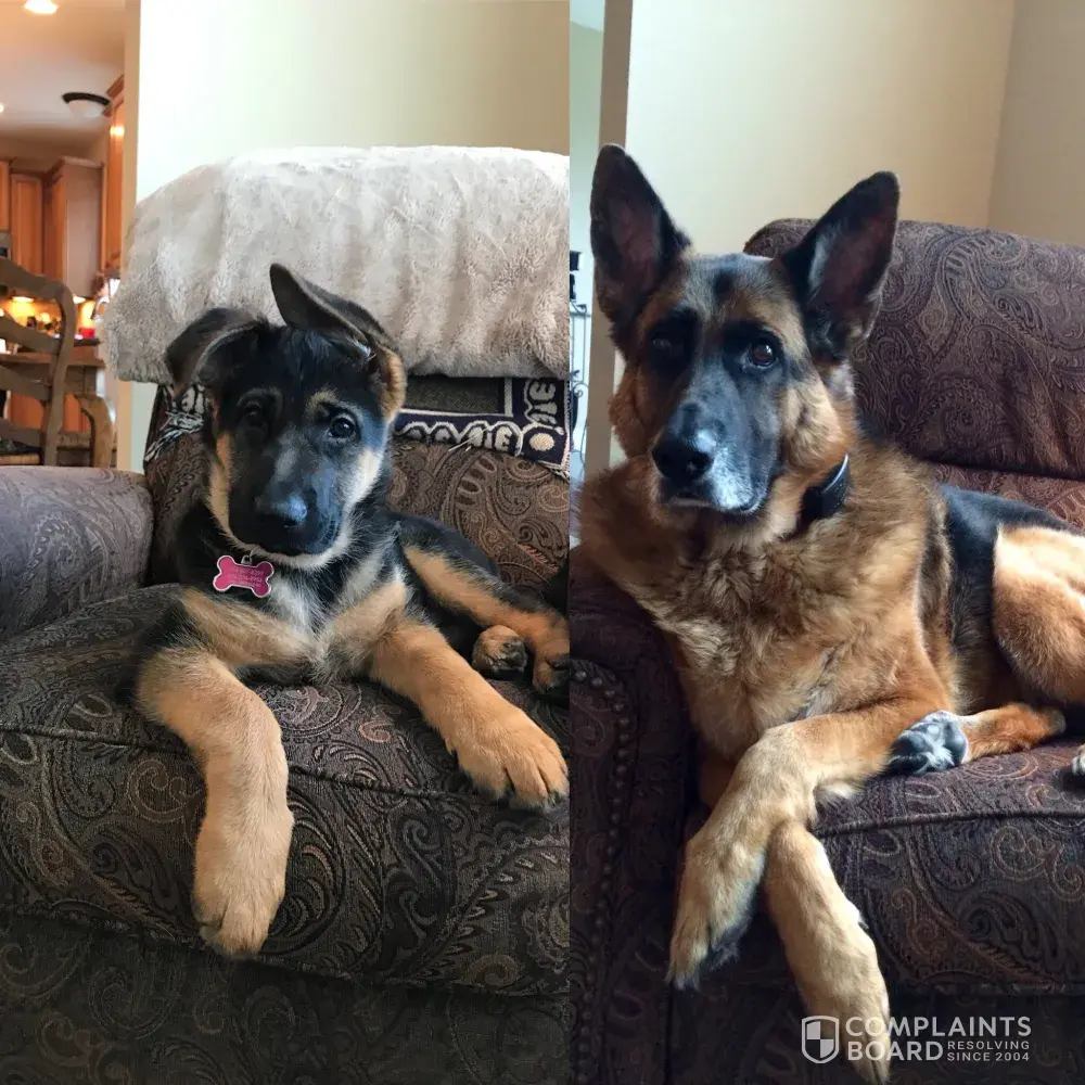 Update: I decided to do my own investigation on this abby a. I discovered something very interesting just now.. abby posted a go fund me account for her husband's liver treatment 2 years ago. she updated it a year ago, (see photos attached of her comments) she posted the following (see pictures) "chuck is getting a service dog that we will both actually use. his is for ptsd, and the dog will also be trained to help me up when I fall, or go find help, and help me pick up things up off of the floor. I want to emphatically state that no funds from this account are being used for this. we are grateful for all of the help we have received in purchasing the dog (who comes home next week) and in the training days to come. he will be 8 weeks old, he is a black and red german shepherd, and his name is nitro." she states on her go fund me account "I hope you enjoy the picture of nitro". keep in mind per abby this photo was taken a week before him coming home per her own admission. she posted a photo of nitro that I am submitting here. this is not the puppy we sold her! I could not believe my eyes! talk about a scam! she states the puppy is coming home next week, she didn't know what puppy she was getting, so how could she post a picture, and where did this pup come from? where did this photo come from?