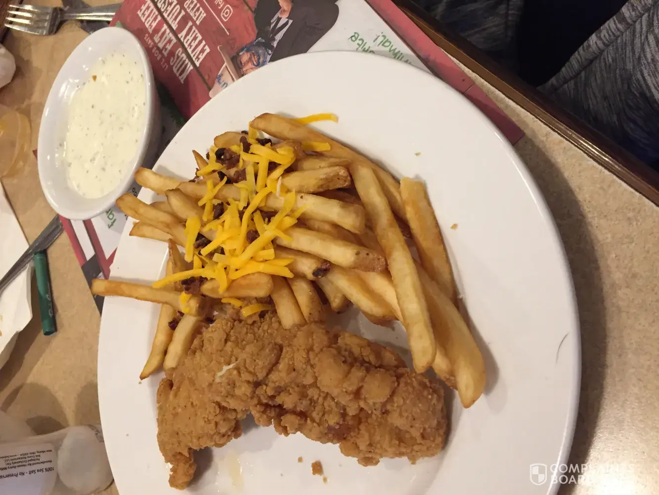 I spent $50 at Bob Evans on VALENTINES DAY, two of our meals came with the choice of a roll, biscuits, or banana nut bread, in which we chose banana nut bread. Waitress came to our table to tell us that she's been asking for someone to cut the bread for us and no one would do it, so was offered a roll or biscuit instead. Waited 45 minutes for our food, our country fried steaks were good, but the mashed potatoes were still froze in the middle, our green beans were cold, my sons macaroni was cold, and we ordered two orders of LOADED French fries, got them and they were cold and they weren't loaded. Told the waitress about everything, she was very apologetic and said she would speak to the manager. The waitress came back to the table almost in tears saying that she would try to fix it herself because the manager was extremely rude. Then they brought a bowl of shredded cheese with bacon to pour on our cold fries. Out of 4 meals that were ordered, the only thing edible was the country fried steaks. Needless to say, that was the WORST Valentine's Day dinner experience we've ever had! We will NEVER chose there again. Also, the manager walked around giving dirty looks the whole time, I never even seen her smile. Very poor management. I will keep passing this along so people know not to waste their time and money there. Here's a picture of just the fries so you can get an idea.