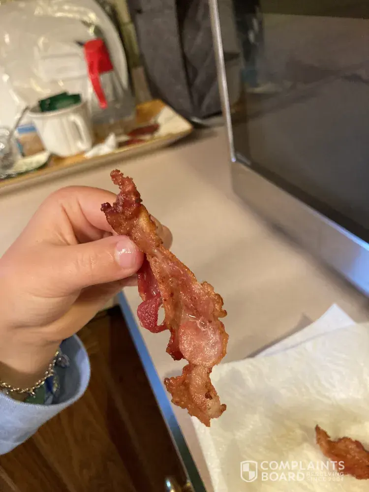 It was not thick fell apart when talking out of the package. I had my grandkids over they love bacon I was so disappointed at This product. I've always gone with Bob Evans sausage bacon always loved it but this time I think it was package strong. I don't know how much more that you would want me to say about this product to make sure that it is somehow result whether you give me cash back or coupon to purchase the same product again.