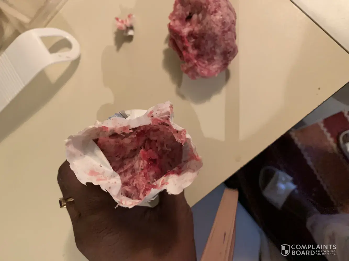 On Nov 5 2019, I made a purchase of your sausage. So next morning I open package and saw something with a dark red substance, my stomach got upset & I was nauseous rest of morning! I'm not sure about your product at this point in time. I need some type of payment for the inconvenience and time & money for product & transportation back to store where I made the purchase! Very disappointed customer of many years!