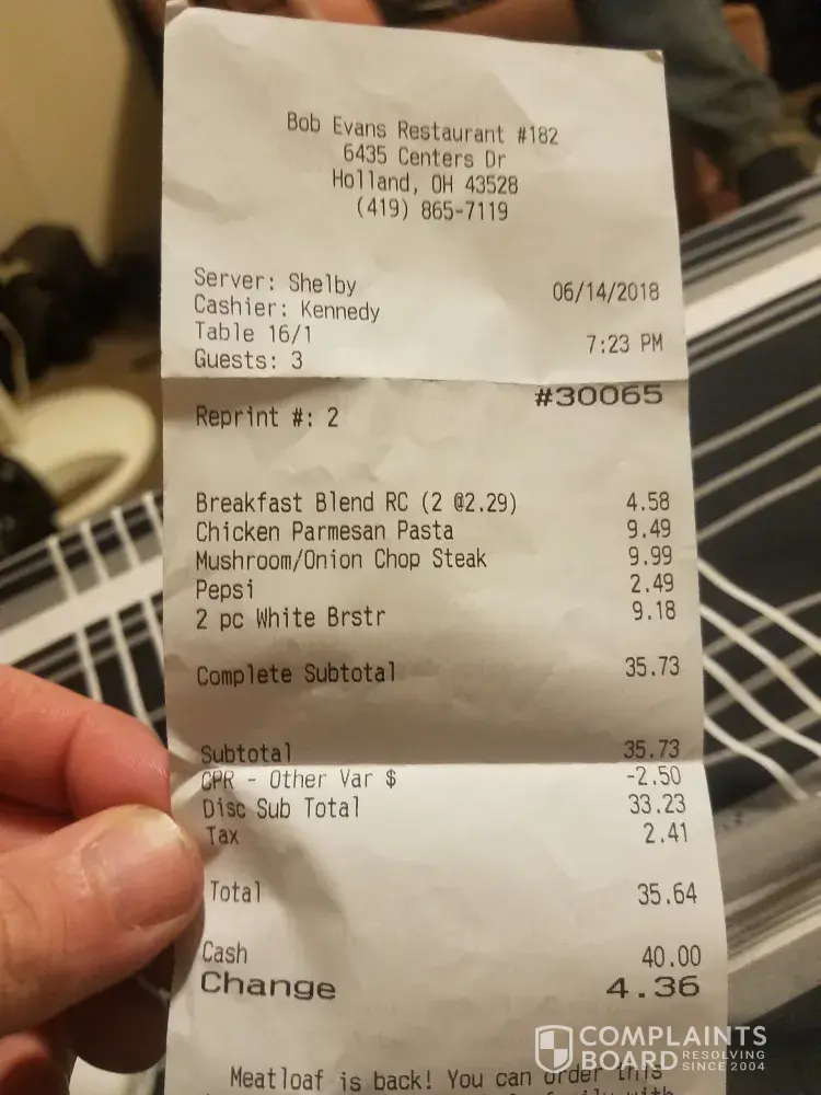 Bob Evans Complaints Page 23 of 31