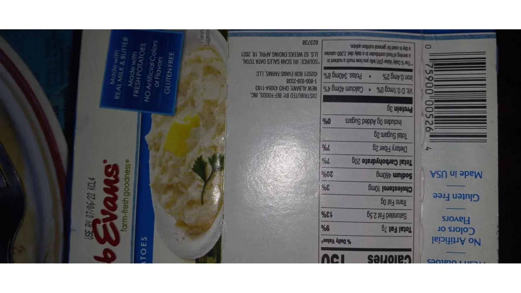 After eating multiple forkfulls of Bob Evans Original Mashed Potatoes I noticed a one inch wide by half inch long black piece of foreign matter in the potatoes...Use by date 07/06/22...