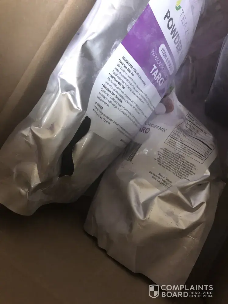 1 star is being too generous with this miserable company. Do not order anything from them. They are super incompetent and an absolute nightmare to deal with. I ordered from them on 8/25 (2 taro powders / syrup) when I received my order both bags of taro exploded inside. You can literally smell the taro through the box and the syrup cap was not on it properly and the syrup was over the inside of the box. I called to report it and every single representative I spoke to did not speak english well and or did not know what the hell they were doing. I asked for a refund and a replacement order. It took them over 3 weeks to do send the order out. They kept telling me it had shipped out on 8/25 and showed received. I had to explain several times that was the original order and to pay attention to what they were doing. Carissma was the woman I was dealing with and she made everything 20x more difficult than it needed to be. I am completely done with this company. I finally received my refund and replacement order directly from tea zone. Do yourself a favor and stay away from this company! Its a complete sham!