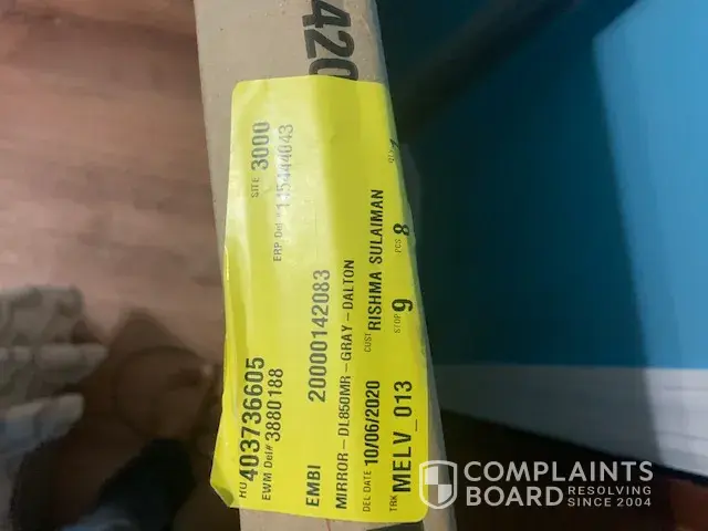 Furniture that was delivered to my condo they stretch my floor and did not completely put together the furniture because they are missing a part that's back order. I call your customer service I was told that part will not be ready until the end of December. I don't need the furniture because I was hoping I have it all set up before Thanksgiving or Christmas. I would like to have a for 100% refund if this doesn't occur I would to get my attorney involved in this matter.