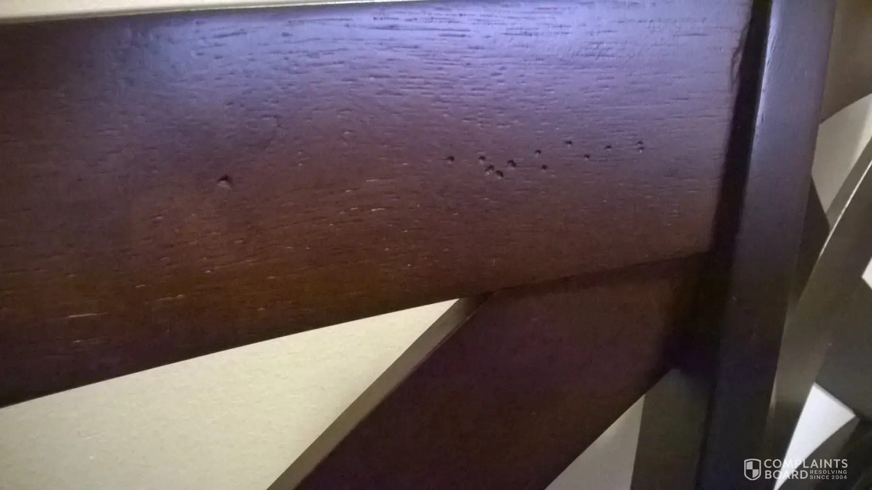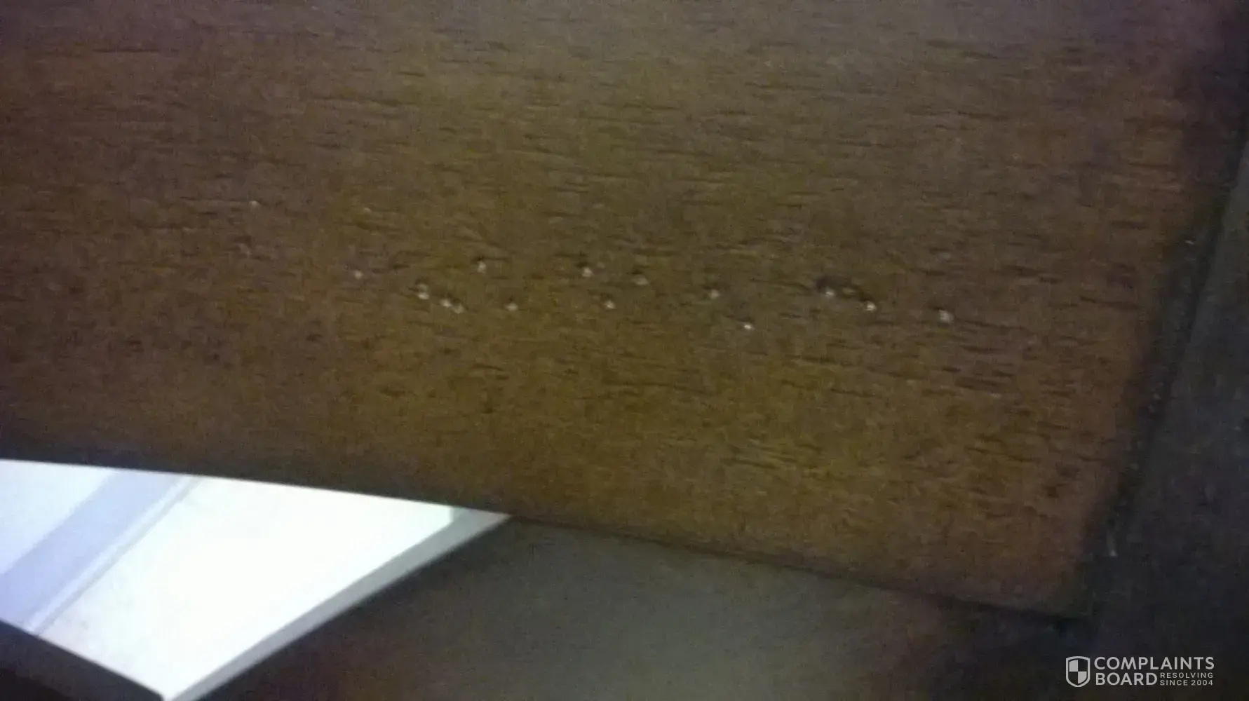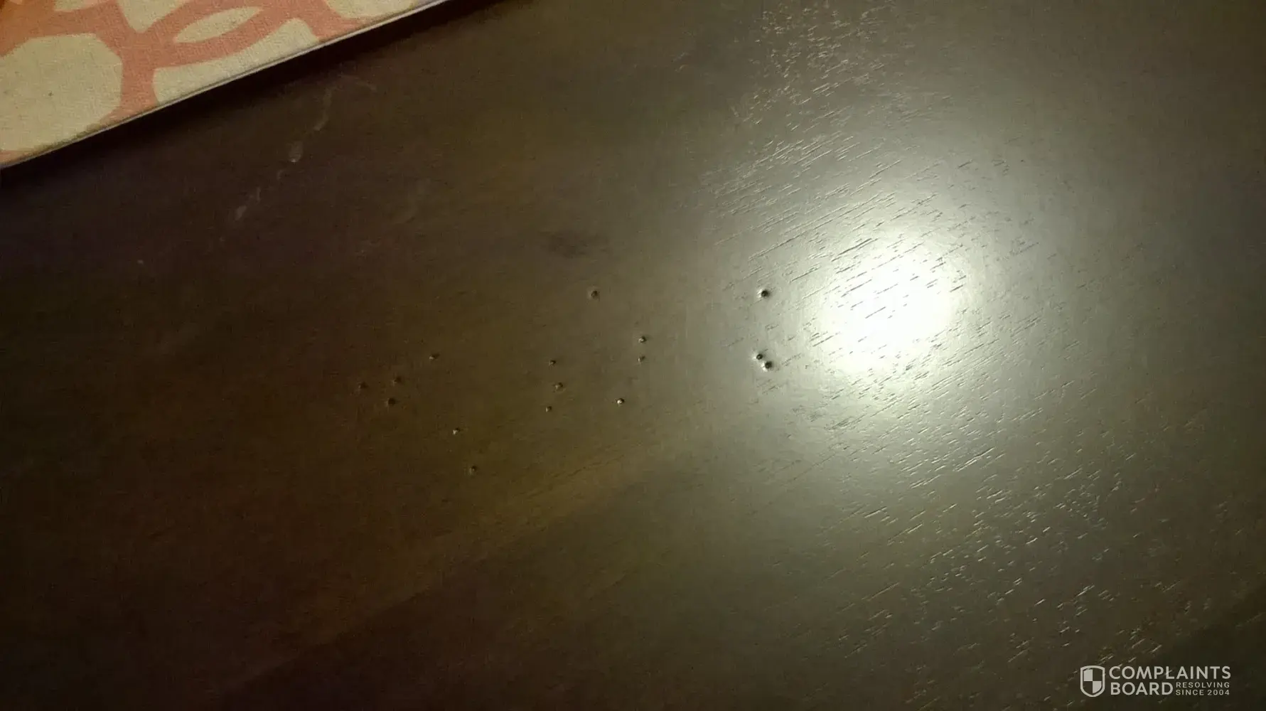 Comes the 2nd attempt at delivery on august 21st, and the guys deliver the furniture again. This time the damage to the items wasa even worse. The console divider with the cup holders, had multiple scratches on the silver of the cupholders, it had what apperes to be some type of either silver nail polish or silver permanent marker on the chaise and on the back of the wedge there was an actual dime sizewd hole at the very bottom. The chest that they unpacked, had the bottom drawer slightly crooked and it would not close completely. the dresser also had markings on the top edge as if someone with a sharp belt buckle kept leaning against it over a prolonged period of time while looking in the mirror. Some people would know what i am talking aboput, the markings that are made by such items right on the edge. the items hardly seemed new.
