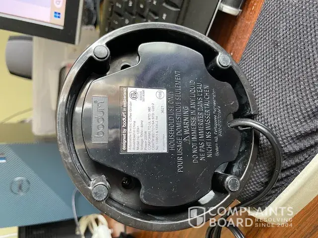 The above-named product suddenly stopped working in the pm (no electrical activation) yesterday, 1-31-2024. Earlier that am it was working fine. Changing numerous electrical outlets were unsuccessful. There is no visible water damage on base of container or electrical pad so suspect a defect in the wiring. My other Bodum of the same model is still working fine from an earlier purchase. My 3rd Bodum of the same model from a much earlier purchase in 2017 never stopped working but the interior base coating became pitted and missing in places so it was considered too damaged and unhealthy to continue using. I have tried calling your Customer Service # 212-367-8855 which is a FAX line NOT a landline, hopefully, this complaint will be acknowledged in a timely manner. Please note that this product has a 2-year warranty. Thank you.