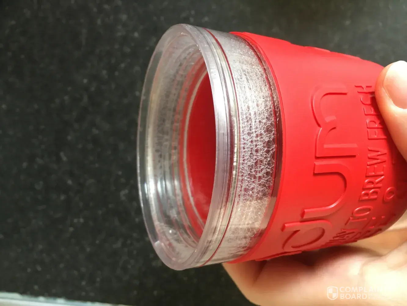 I bought the Bodum travel mug via Amazon back in March. Since then, it appears to have sprung a leak. As can be seen from the attached pictures, water (and now soap suds) are getting trapped in between the inner and outer layers of plastic. Very disappointing as it is less than two months old. Would appreciate any support and further guidance on this issue, please.