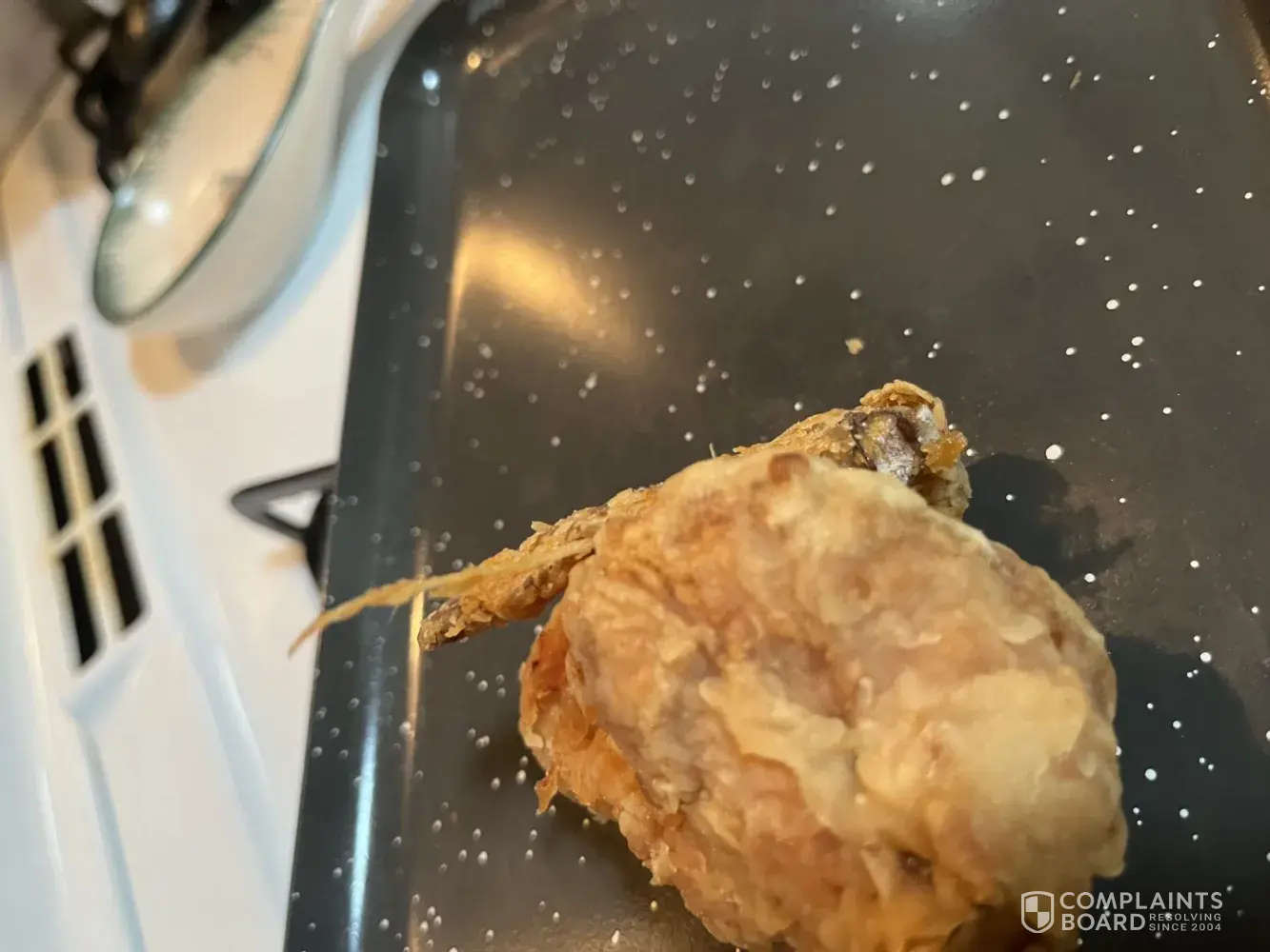 We ordered 1 3 wings with a biscuit and 1 3 wings Combo with Mashed Pottoes, 1 regular tea and when we got home to sit down to eat our food, the chicken wings had feathers on them. We tried calling the store but no one would pick up the phone so this is why we a doing it online.